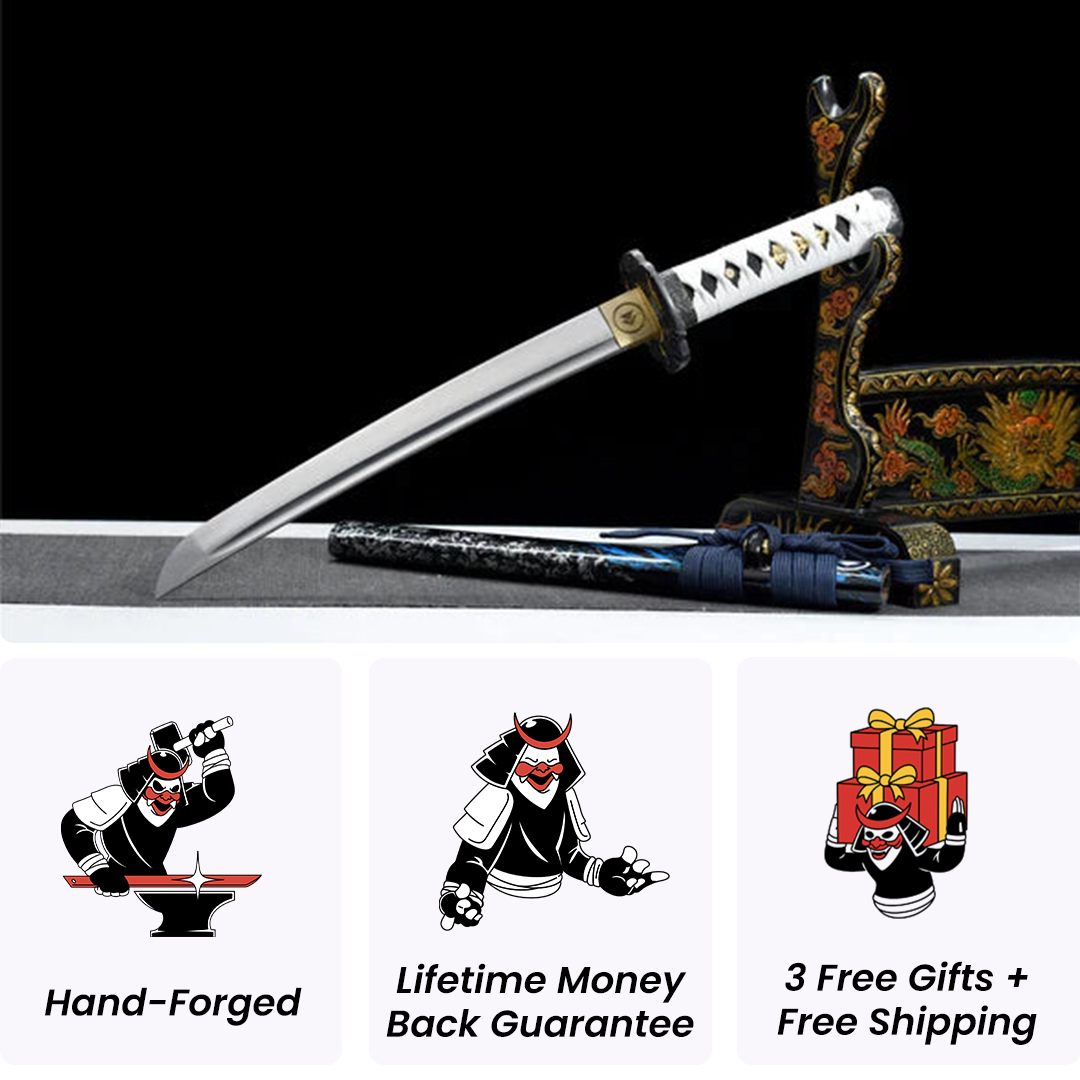 All our katanas come in a brocade box, with a silk bag, a katana stand, a certificate of authenticity and a mystery gift