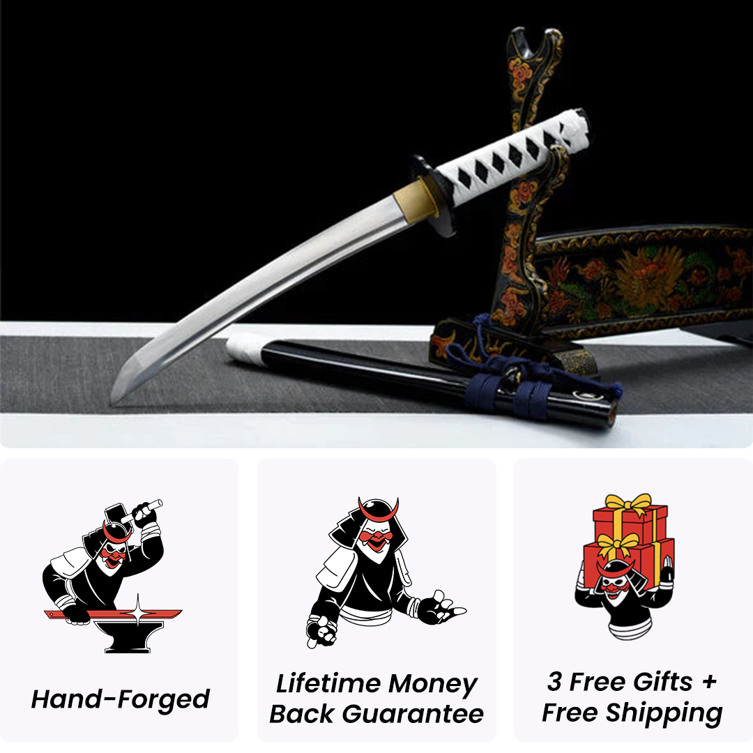 All our katanas come in a brocade box, with a silk bag, a katana stand, a certificate of authenticity and a mystery gift