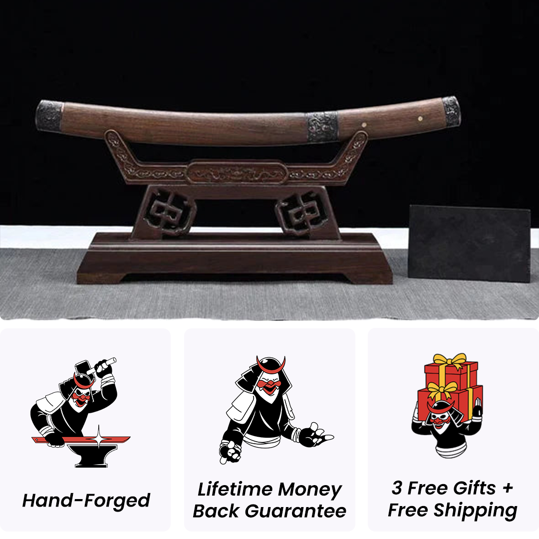 All our katanas come in a brocade box, with a silk bag, a katana stand, a certificate of authenticity and a mystery gift
