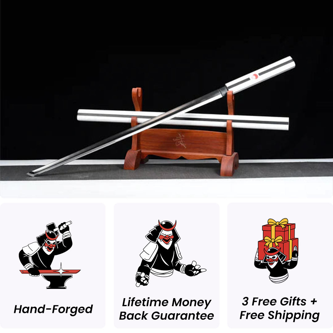Discover Sasuke Uchiha's Katana, the Kusanagi in white, made of 1060 carbon steel, an exceptionally sharp blade hand-forged with precision. Inspired by Naruto, this Japanese katana is an artisanal masterpiece, perfect for fans of Naruto and Sasuke! Join our samurai army!